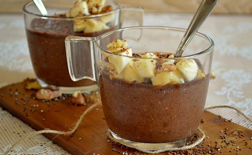 Βάζω όλα τα υλικά στο μπλέντερ κ τα πολτοποιώ ώσπου να ομογενοποιηθούν. Μοιράζω σε 2 ποτηράκια, σκεπάζω με αλουμινόχαρτο κ τα βάζω στο ψυγείο για 6 ώρες ώσπου να δράσουν οι σπόροι chia κ να πήξουν την κρέμα. Καλή σας απόλαυση!
