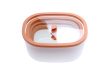 Τα σιλικονούχα δαχτυλίδια είναι ενσωματωμένα πάνω στα γυάλινα καπάκια. Έτσι, μένουν πάντα στη θέση τους, καθιστώντας τα ιδανικά και για τη μεταφορά υγρών.